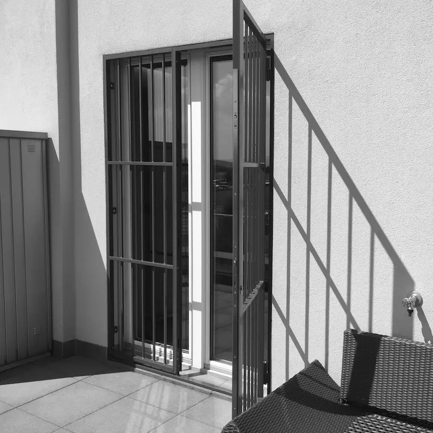 Gittertüren oder Schiebegitter mit hochwertigen Mehrfachverriegler in allen Grössen und Farben, sind intressante Lösungen – überall dort wo der Komfort von offenen Fenstertüren gefragt ist.
